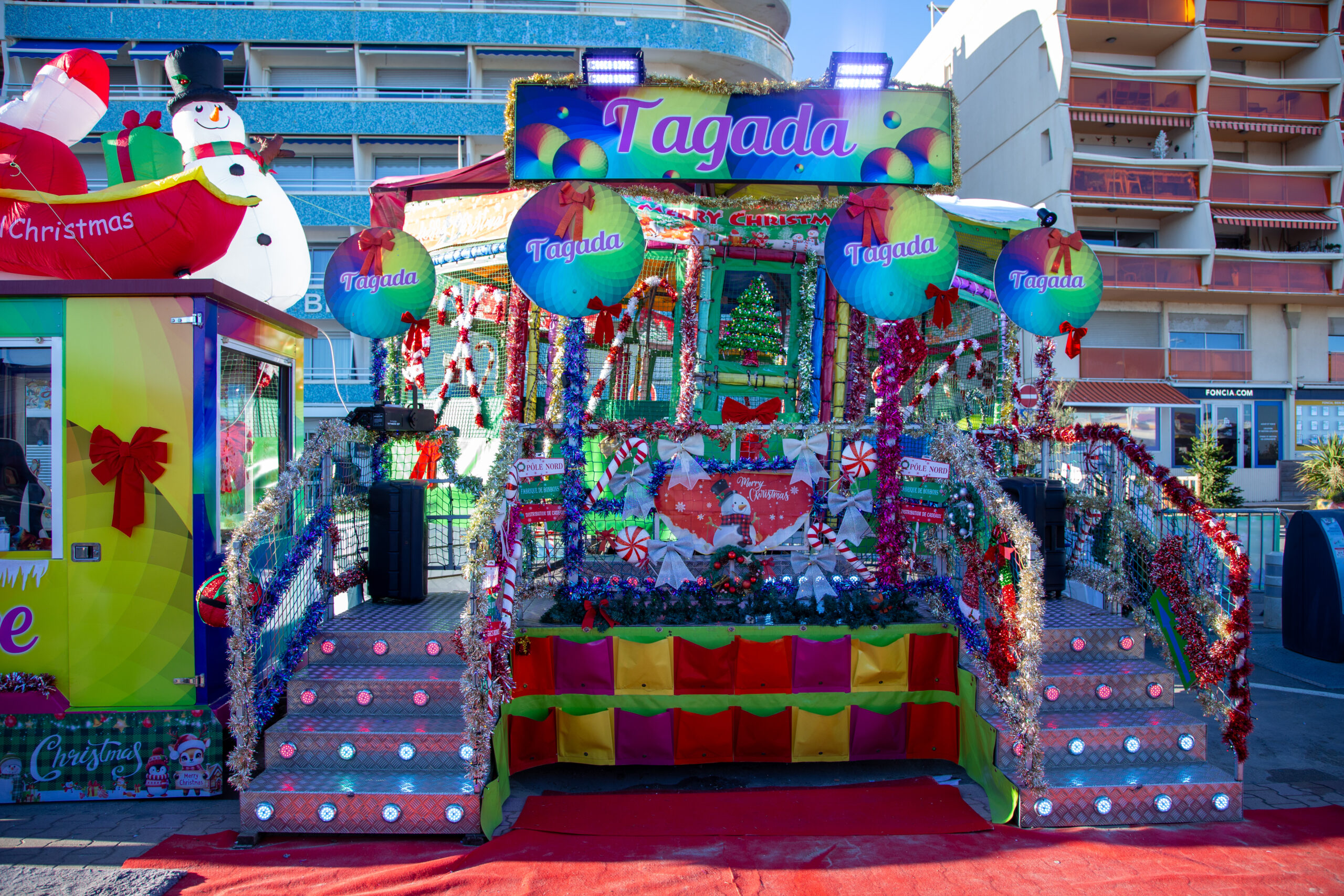 À Palavas-les-Flots, Noël rime aussi avec éclats de rire ! Le marché de Noël s’accompagne de manèges joyeux et colorés, où les enfants peuvent s’amuser !