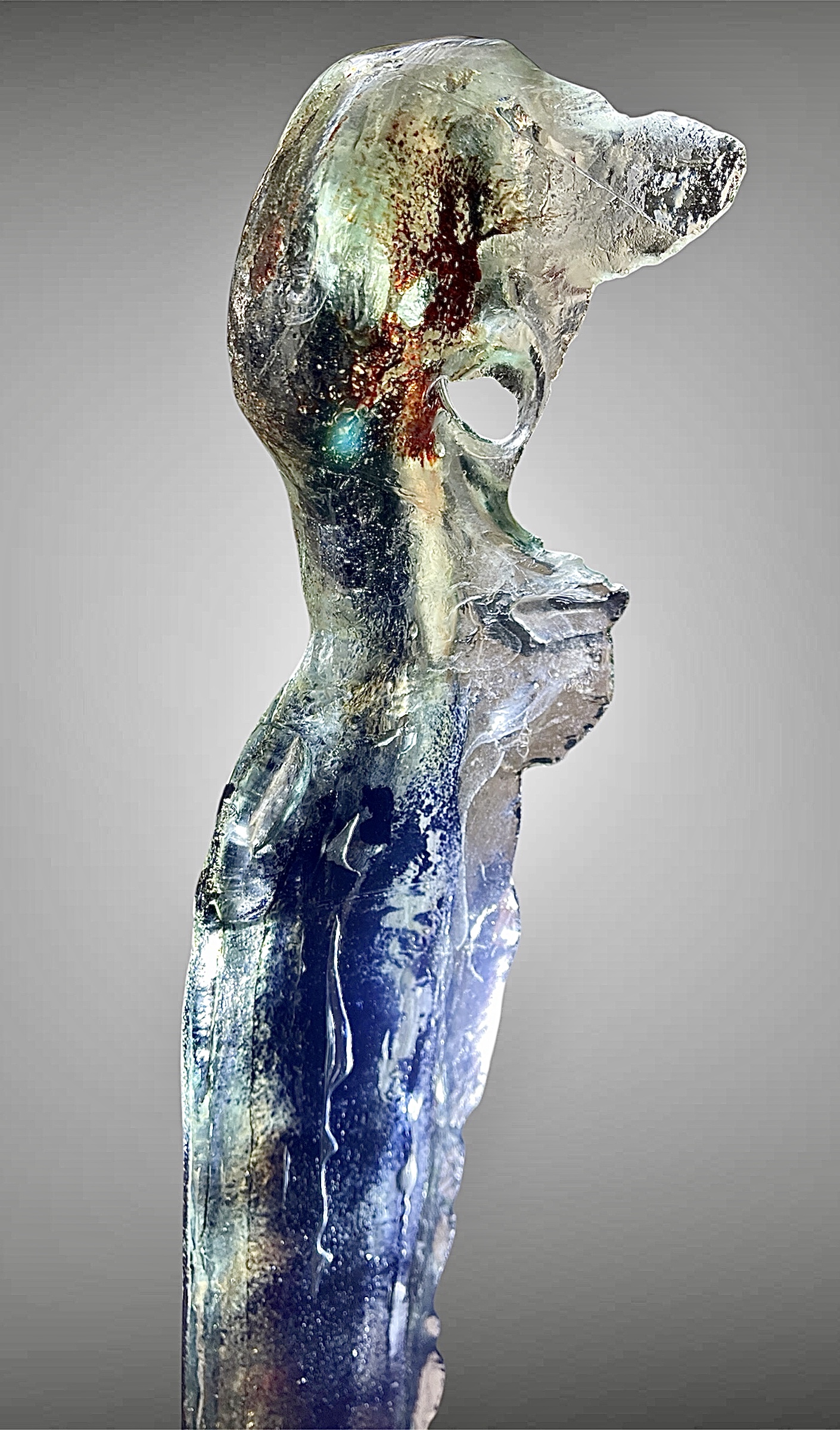 Amadéo, puisse dans son héritage culturel et sa formation pour créer des sculptures en verre coulé, fusionné et thermoformé empreintes d’équilibre, de silence et de profondeur poétique.